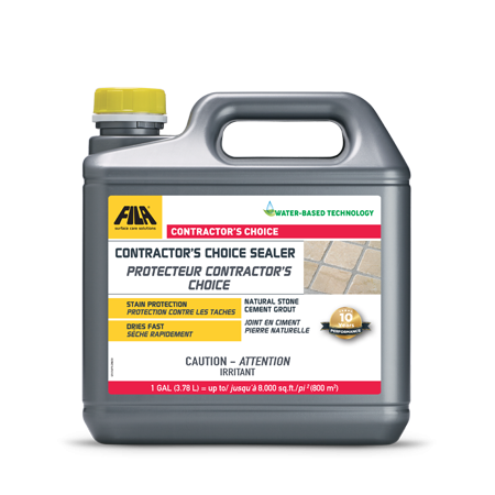 FILA CONTRACTOR'S CHOICE is protects natural stone and cementitious grout joints from stains, water and humidity. The water based formula makes cleaning fast and easy. CONTRACTOR’S CHOICE dries in just 4 hours.